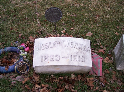 Wesley Werner was wounded and subsequently died from those wounds on 10 November, 1918 - the day before Germany signed the armistice ending World War 1.
